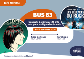 Lire la suiteLigne 83 - Navette Parc Expo - Concerts Goldmen et 15000 voix légendes du rock