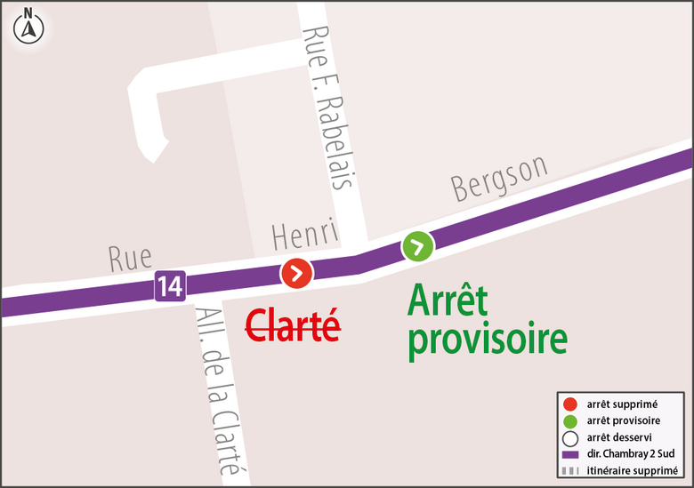 14L’arrêt Clarté n’est pas desservi par la ligne 14 direction Chambray 2 Sud.