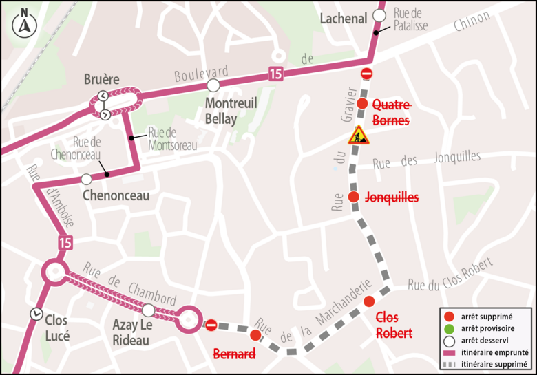 Les lignes 4 direction Atlantes et 15 direction La Riche Soleil, empruntent le boulevard Tonnellé.Joué-lès-Tours - Travaux rue des Graviers From Monday 16 to Friday 27 February