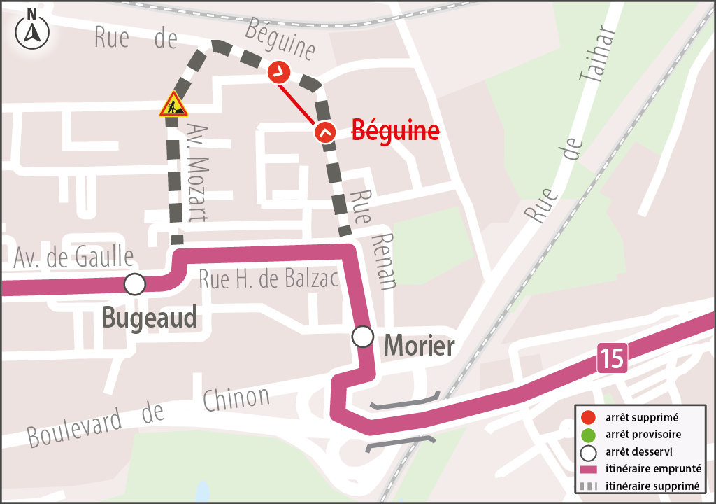 15L’arrêt Béguine n’est pas desservi par la ligne 15 dans les deux sens.