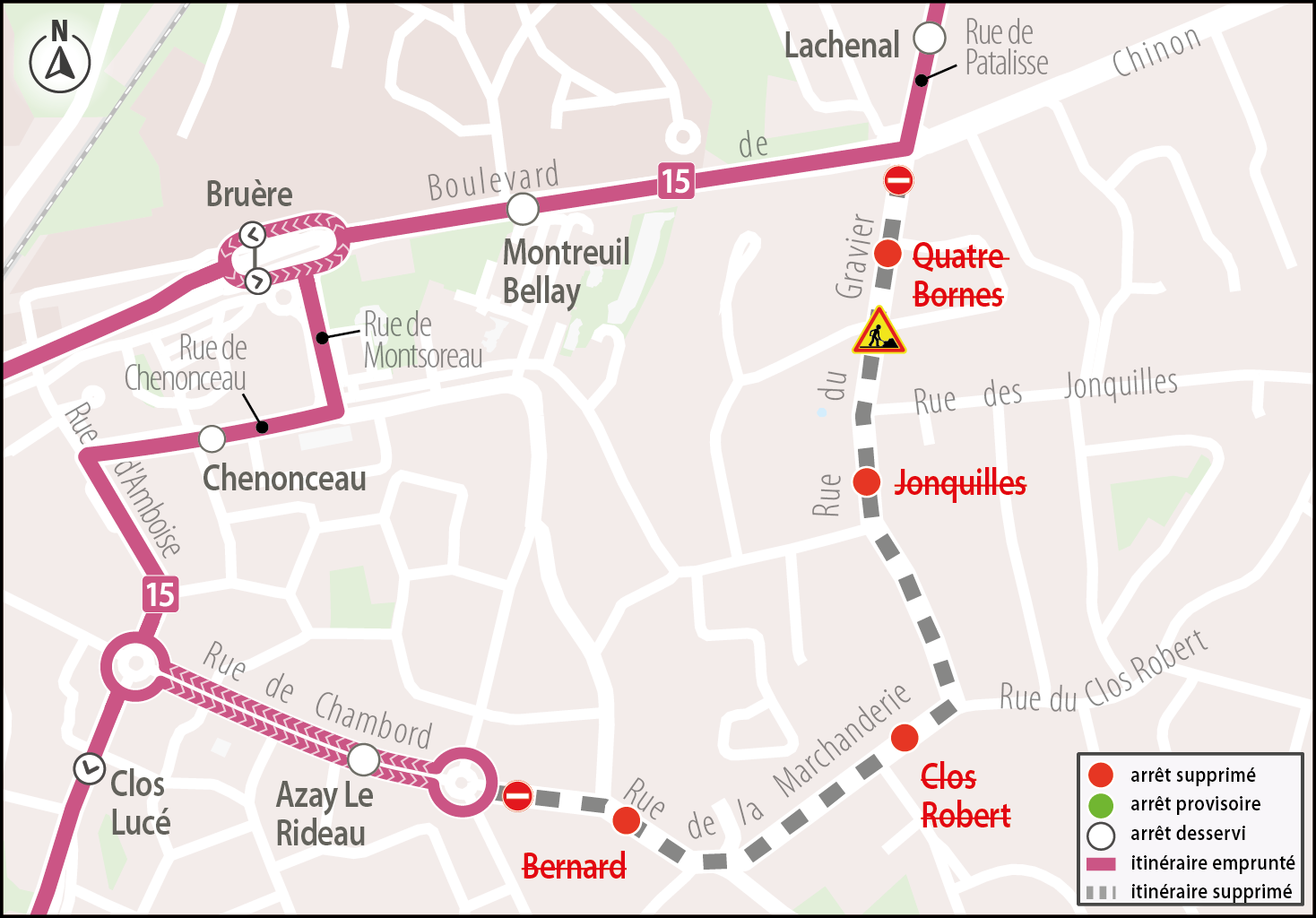 15Les arrêts Quatre Bornes, Jonquilles, Clos Robert, et Bernard ne sont pas desservis par la ligne 15 deux sens.
