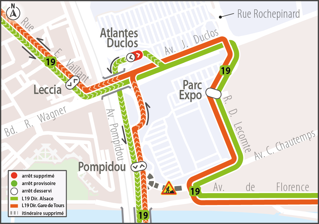 L’arrêt Atlantes Duclos n’est pas desservi par la ligne 19 direction Gare de Tours.