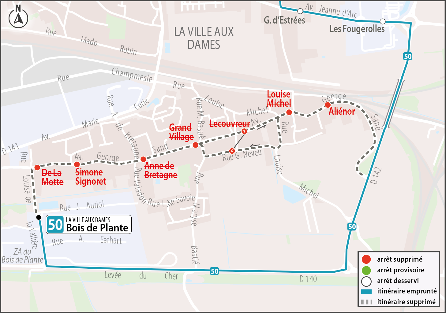 Les arrêts Chatigny, Les Muses, Gannay, Chêne Vert, Les Planches, Stade Varenne et St Venant ne sont pas desservis par la ligne 50 direction Vaugareau.