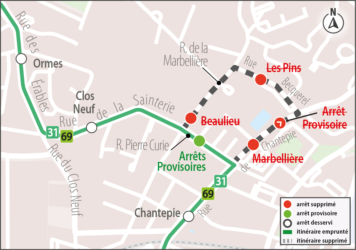Ligne 31 et 69 > Provisoire situé rue Pierre Curie.