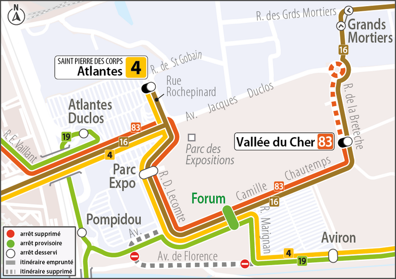 4161983En raison du Forum de l’Orientation à Tours les arrêts provisoires situés avenue Camille Chautemps sont desservis dans les deux sens par :