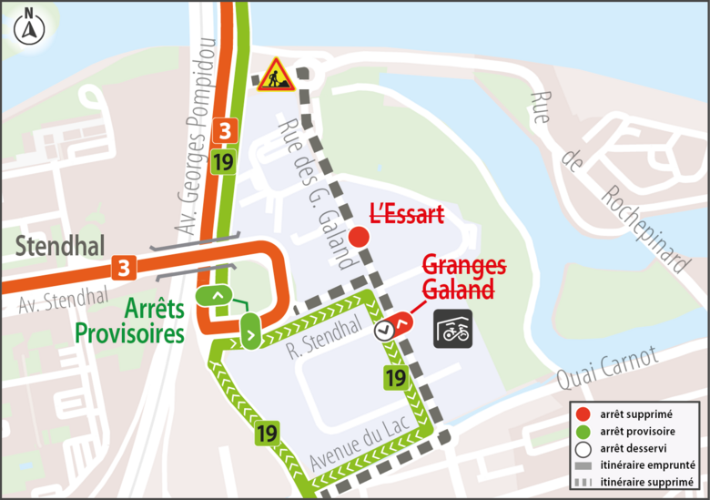 Ligne 19 > Provisoire situé Avenue Georges PompidouLigne 19 > Granges Galand situé rue des Granges Galand (uniquement direction Alsace)