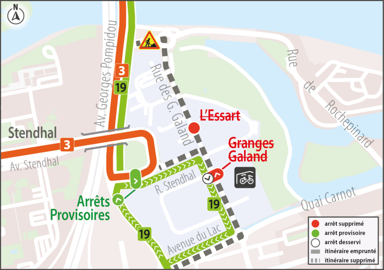 Ligne 19 > Provisoire situé Avenue Georges PompidouLigne 19 > Granges Galand situé rue des Granges Galand (uniquement direction Alsace)
