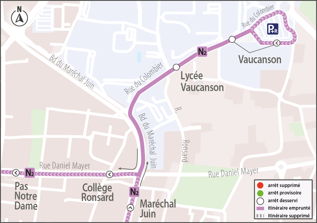N2Pour desservir la nouvelle gare routière à Vaucanson, les arrêts Lycée Vaucanson et Vaucanson sont exceptionnellement desservis par la N2 en direction de Gare de Tours.