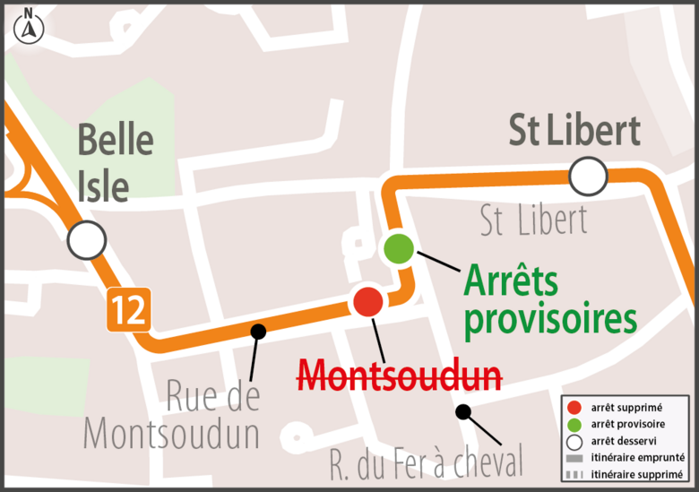Arrêt(s) de report : provisoires, situés rue du Fer à Cheval.