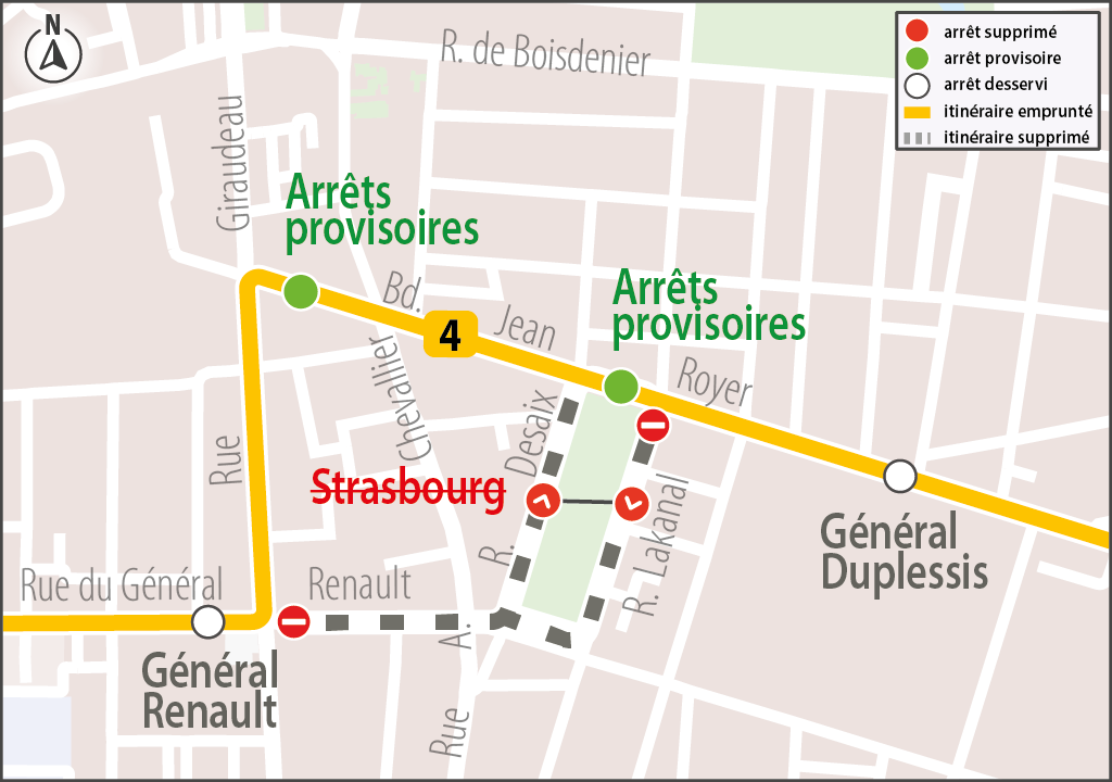 Arrêt(s) de report : Rue Neuve, situé rue du Professeur Debré ou Cosson, situé Route de Château-Renault.