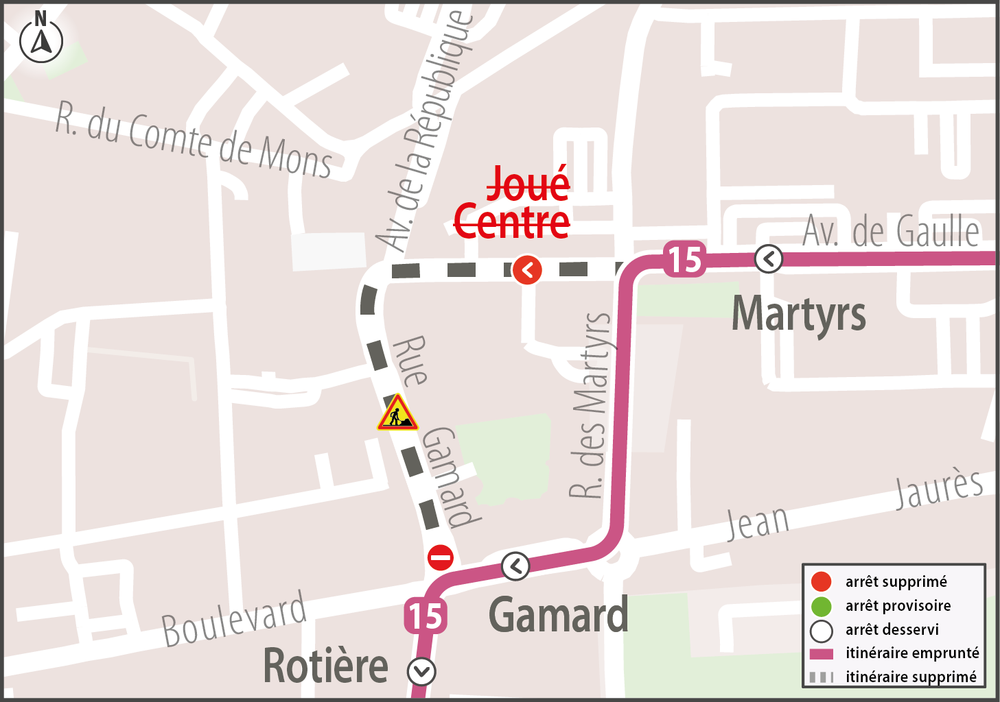 Les lignes 4 direction Atlantes et 15 direction La Riche Soleil, empruntent le boulevard Tonnellé.Joué-lès-Tours - Travaux rue Gamard aujourd'hui de 09:00 à 12:00