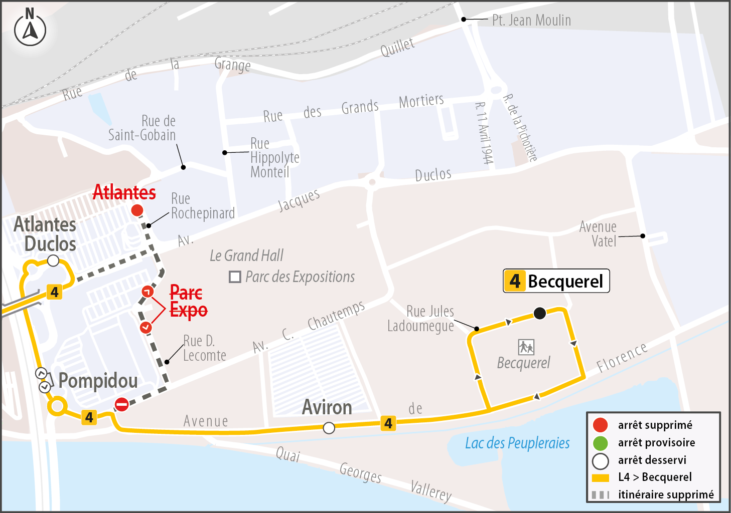 4Les arrêts Atlantes, et Parc Expo ne sont pas desservis par la ligne 4dans les deux sens de circulation.