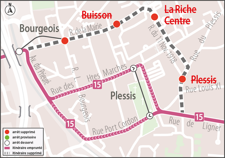 Les arrêts La Riche Centre et Buisson ne sont plus desservis par la ligne 15.