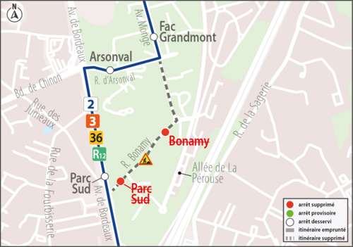 - L'arrêt Parc Sud est reporté avenue de Bordeaux.