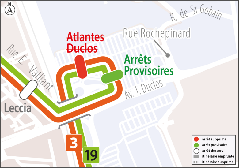 Lignes 3 et 19 > Provisoires situés près de l'Avenue Jacques Duclos.