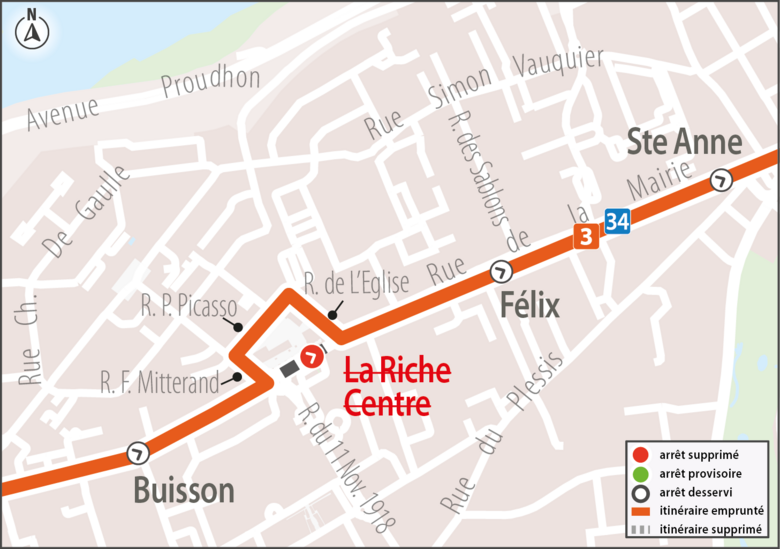 3a3b34L'arrêt La Riche Centre n'est pas desservi par les lignes 3 direction Onze Arpents / Grand Sud, et 34 direction Gare de Tours.