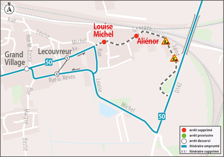 50Les arrêts Aliénor et Louise Michel ne sont pas desservis par la ligne 50 deux sens.