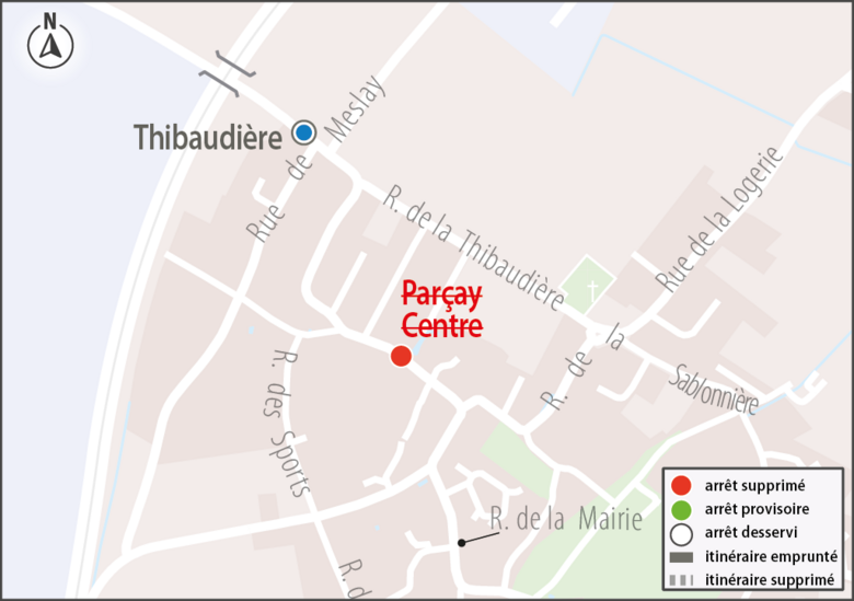 53L’arrêt Parçay Centre n’est pas desservi par la ligne 53 dans les deux sens.