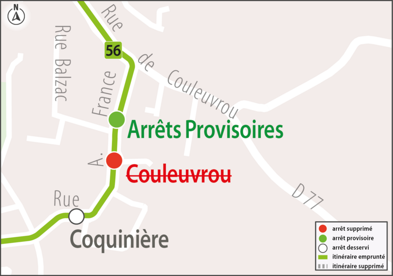 56Les arrêts Couleuvrou ne sont pas desservis par la ligne 56 deux sens.