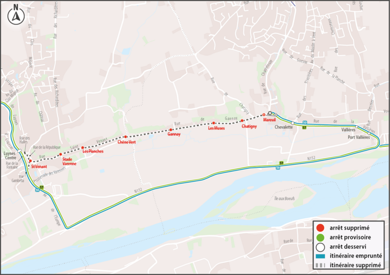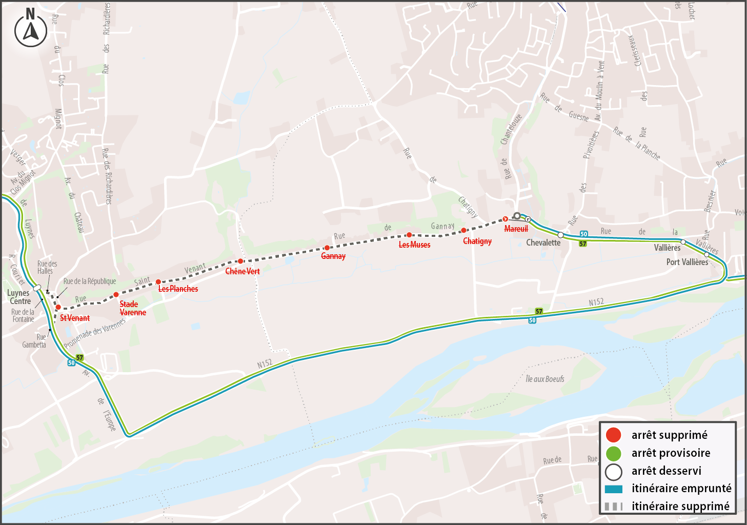Les arrêts St Venant, Stade Varenne, Les Planches, Chêne Vert, Gannay, Les Muses, Chatigny dans les deux sens et Mareuil direction (Bois de Plante / Ursulines uniquement) ne sont pas desservis par les lignes 50 et 57.