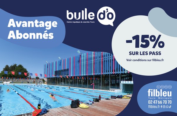 Grâce à votre carte d’abonné Fil Bleu, profitez d’un avantage exclusif dans votre centre aquatique Bulle d’O de Joué-lès-Tours :