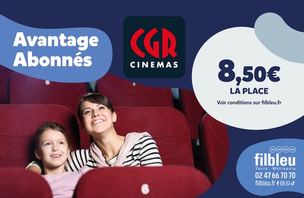 Grâce à votre carte d’abonné Fil Bleu, profitez d’un avantage exclusif dans vos cinémas CGR Tours Centre et 2 Lions :