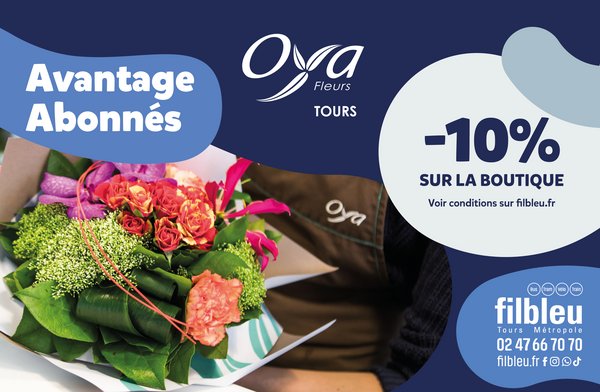 Grâce à votre carte d’abonné Fil Bleu, profitez d’un avantage exclusif chez votre fleuriste Oya Fleurs à Tours :