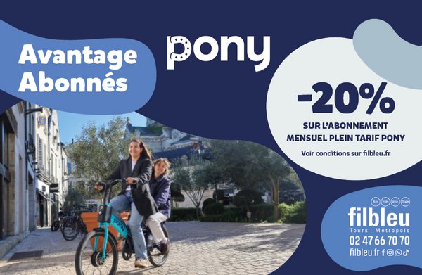 Grâce à votre carte d’abonné Fil Bleu, profitez d’un avantage exclusif pour rouler en vélo Pony :